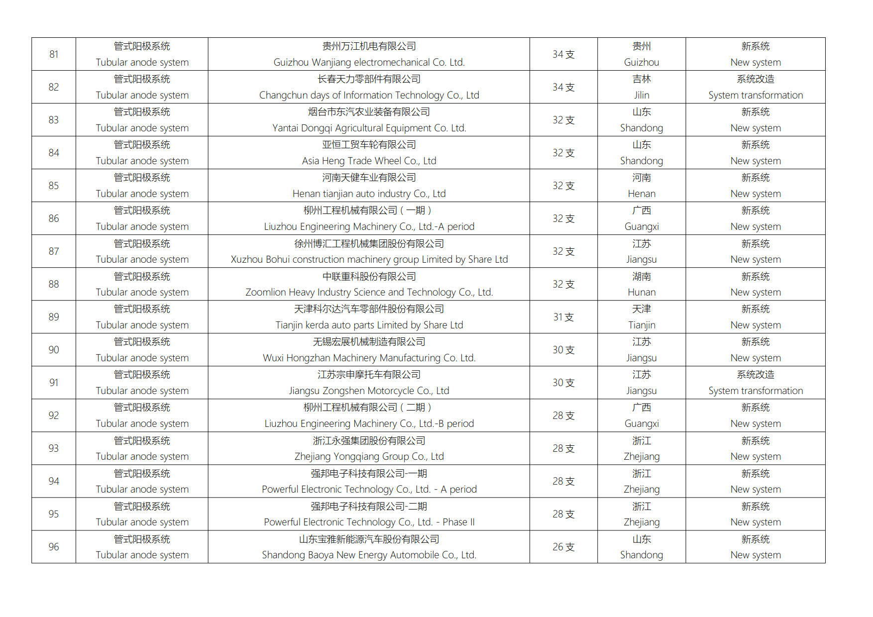 电泳阳极系统