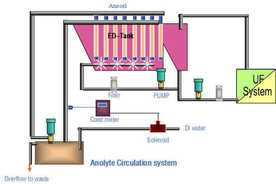 在阴(阳)极电泳过程中阳(阴)极区域不断产生有机酸,如果不及时去除会带进槽液,使PH值下降,影响工艺参数PH值的稳定,影响泳透力和涂膜性能,再溶性增大。阳(阴)极区域不断产生的有机酸稳定槽液的PH值,保证零件的泳透深度及涂膜厚度。